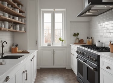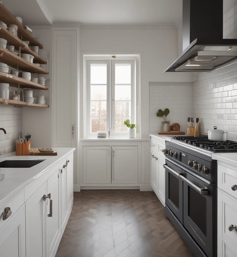 Cucina attrezzata con forno, piano cottura a gas 4 fuochi, micro-onde, frigorifero, macchina caffè espresso
